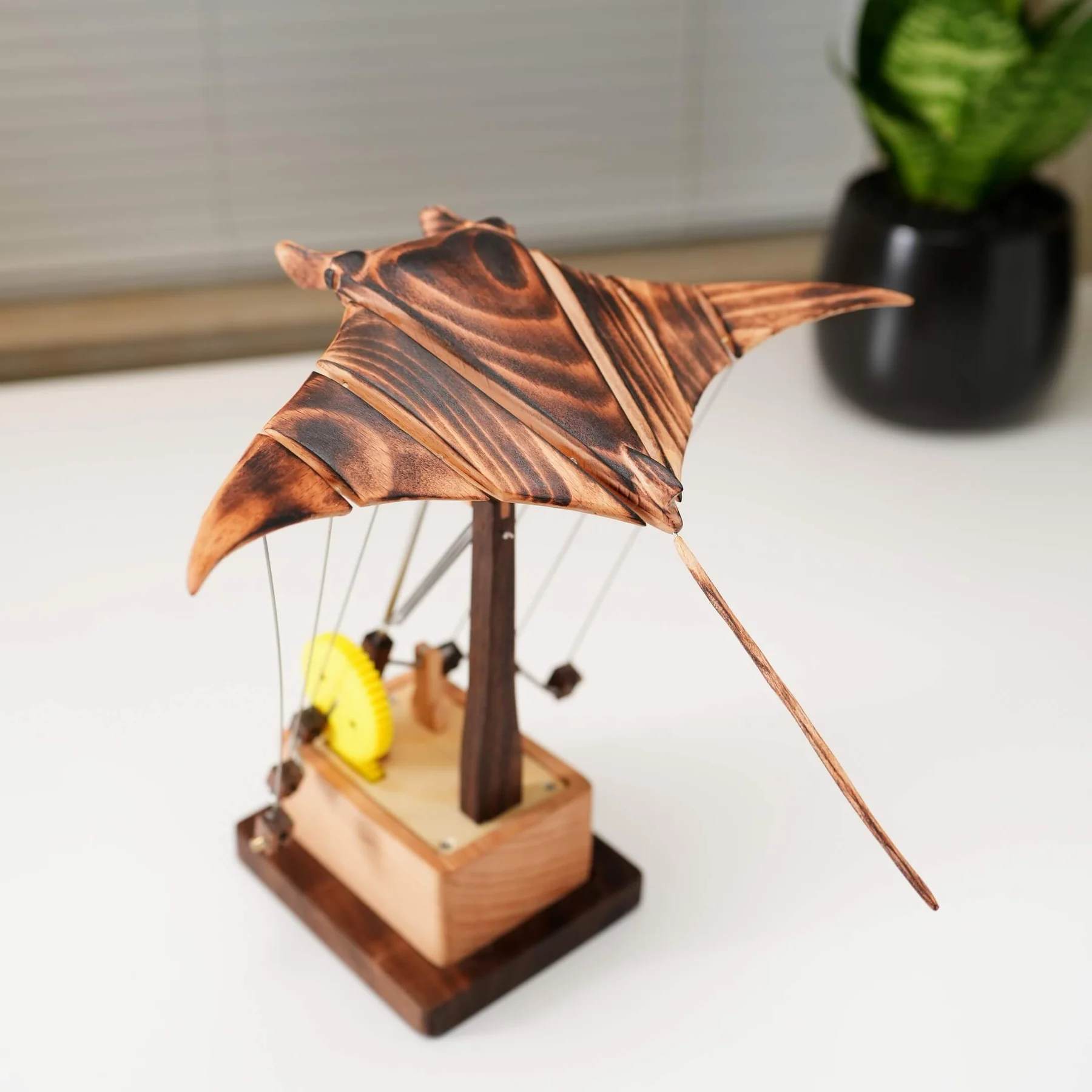 As I grew up, life got heavier — stress, noise, endless rushing. But every time I saw the calm creatures of the deep — the jellyfish, the manta ray, the whale — I felt something I hadn’t felt in years: peace. So I teamed up with friends and started creating these wooden versions of ocean life. Every time I see them move, it feels like going back to that simple, carefree childhood. Wood stands for nature, motion stands for curiosity and innocence, and the marine life — with its slow, flowing rhythm — stands for calm and healing.
